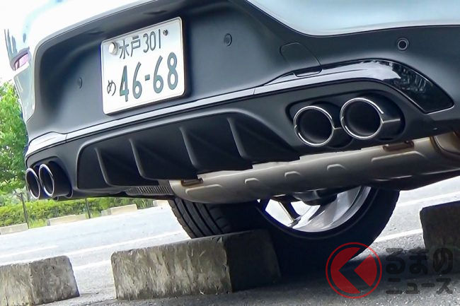 走行モード間の変化量については、エキゾーストサウンドにもいえる。コンフォートモードでは音量を絞りつつも、既に低音域の迫力のあるスポーティな排気音。これをスポーツ+に切り替えるとバルブの開放に伴い音がよりクリアに、そしてレスポンスも上がるのだが、近頃のスポーツカーのように極端に爆音になるわけではない。