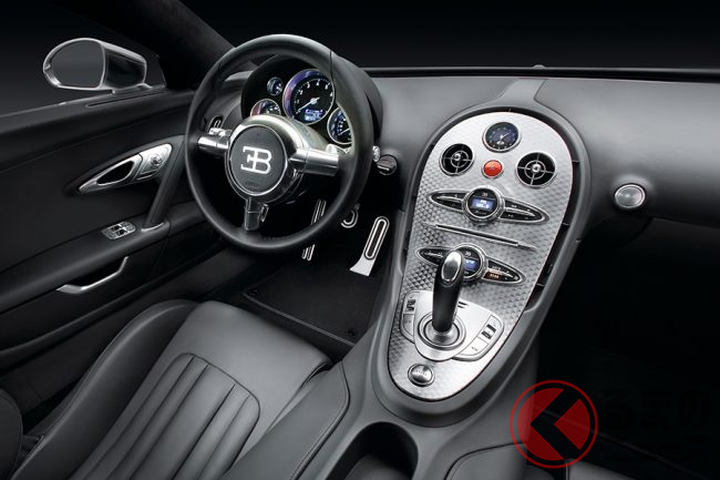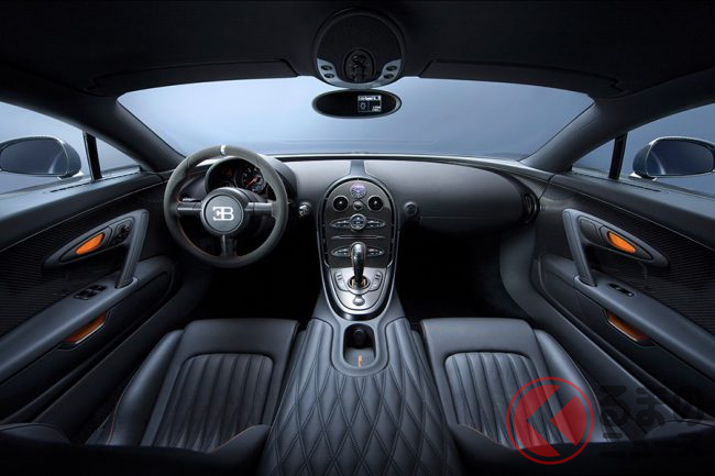 インテリアも大きな見どころ。高級なコードバンレザーを使用したキャビンは、まさに究極のラグジュアリーともいうべきもので、究極のパフォーマンスとともに、エットーレの名前が与えられたヴェイロンに相応しい。