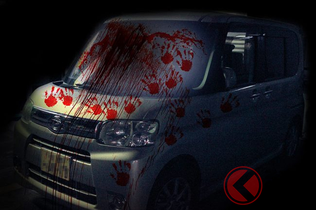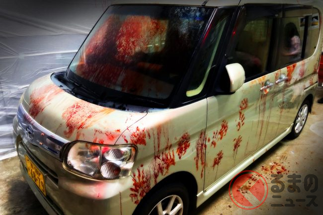 希望者には、クルマを血まみれにできるオプションも用意されています。イベント終了後に記念撮影をすることも可能です。最後は、スタッフの手によって車道を問題なく走行できる程度までに血を拭き取ってもらえます。