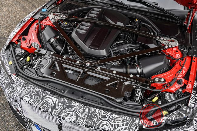 現行型モデルと比較して、新型M3セダン/M4クーペに搭載された3リッター直列6気筒ツインターボエンジンは、最高出力を49ps(コンペティションモデルは60ps)向上されており、最大トルクは650Nmに達する。
