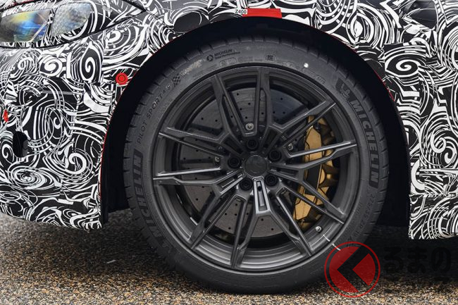 公開された新型M3セダン/M4クーペの写真を見ると、BMWモデルの象徴であるフロントグリル「キドニーグリル」も偽装されており、新型3シリーズのような幅広のデザインなのか、新型4シリーズクーペのような巨大なキドニーグリルなのかはまだわからない。
