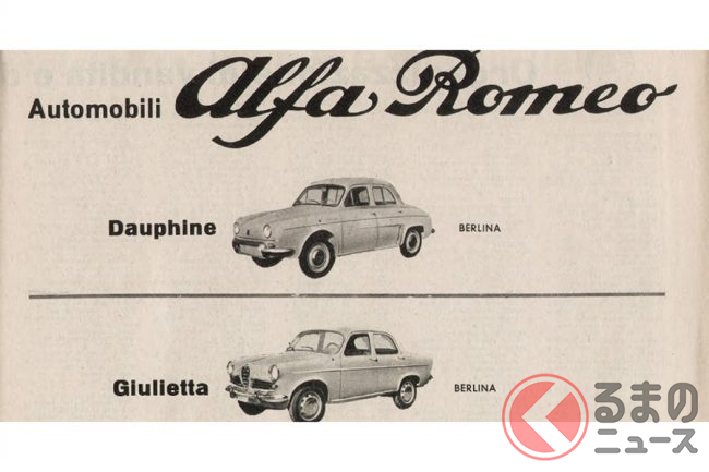 デビューから60年以上の歳月が経過した現在となっては、もはやイタリアでもあまり知られていないそうだが、実はアルファ ロメオは仏ルノーとのライセンス契約に基づいて1959年からルノーの小型RRセダン「ドーフィン」を生産していた。