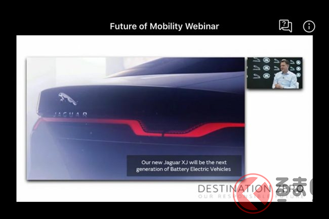 EVについては、現行のジャガー「I-PACE」をさらに進化させるとともに、ジャガーの最上級モデル「XJ」をEVにフルモデルチェンジします。車両のティザー画像として、次期XJのリアビューを公開しました。