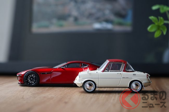 そうしたなかで、すでに初期在庫分が完売した1/43モデルカーが出たことに、マツダ関係者の間でも驚きの声が上がっています。しかも、それが「R360 COUPE」と「RX-VISION」であるという点が、いかにもマツダファンらしいです。
