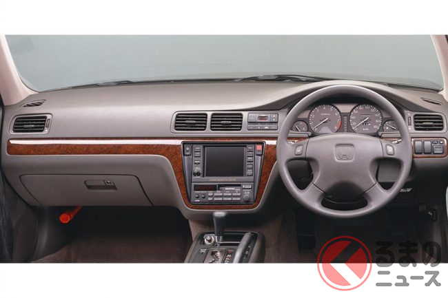 室内の広さを考慮して、初代プラウディアはFFとしているのが最大の特徴です。グレーの本革でまとめられたインテリアには木目パネルが使用され、当時としては最先端のサイドエアバッグも装備しています。