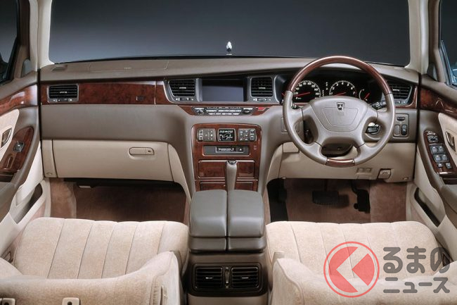 大型フロントグリルを廃止した代わりに七宝焼きのエンブレムを装着したり、日本の伝統工芸の技が光る漆塗りのインパネをオプション設定するなど、細部にまで独自の高級路線を貫いていました。
