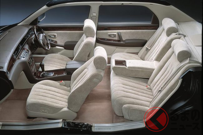 デビューから4年後の1993年おこなわれたマイナーチェンジでは、七宝焼きエンブレムや漆インパネを廃止し、オーソドックスなフロントグリルを装着。このクルマをベースに、日産の最高級サルーン「プレジデント」も作られました。