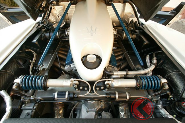 基本構造体はノーメックスハニカムを採用したカーボンモノコックで、これもまたMC12に独自のもの。リアミッドに搭載されたエンジンは、632psの最高出力となる6リッター仕様のV型12気筒DOHCで、これはエンツォ用ユニットがベースとなっている。