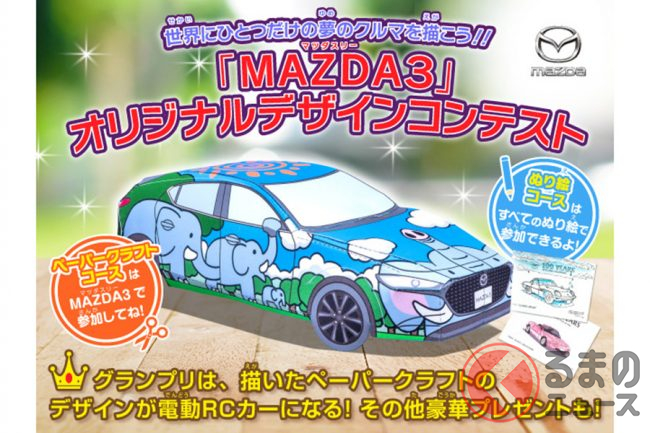 マツダは、夢のクルマをペーパークラフトとぬり絵でつくる「マツダ3オリジナルデザインコンテスト」を実施すると発表しました。コンテスト入賞者にはマツダにちなんだ景品が贈られます。
