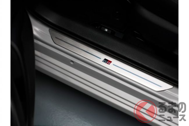 インテリアは、ブラックのヘッドライニング、触感のあるパンチングレザーに包まれたステアリングホイール、GRのロゴが入ったブラッシュドアルミニウム製のフロントスカッフプレートで表現。