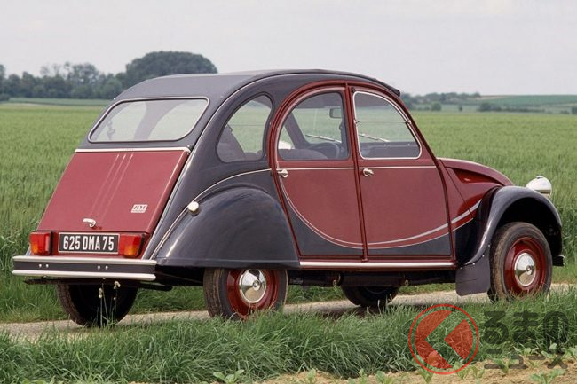 2CVという車名はフランス語で「2馬力」にあたりますが、最高出力が2馬力だったわけでなく、出力によってクラス分けされる車格の分類のひとつて「2CVクラス」という意味です。