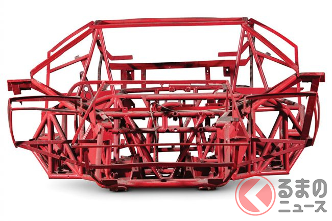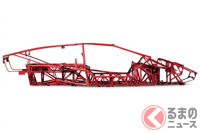 一方のカウンタックは、1979年式の「LP400S」と1984年式の「LP500S」に加えて、レプリカながら、あたかも芸術品の如きスペースフレームまでが出品されている。