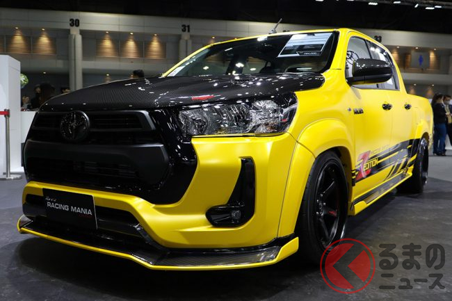 トヨタ「ハイラックス」をスポーティにカスタムした仕様が、バンコクモーターショー2020に出展されました。イエローのボディとカーボンパーツのコントラストが眩しい1台です。