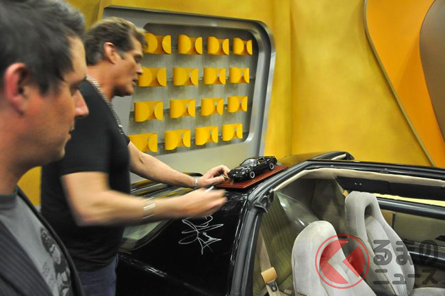 そんな出品アイテムたちのなかでも異彩を放っていたのが、かつて世界的にブームを巻き起こしたTVドラマ『ナイトライダー』のシンボルともいうべき、漆黒のスーパーマシンであった。「キット(K.I.T.T.)」こと「ナイト2000」である。