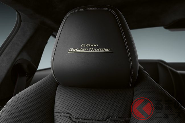 インテリアにおいては、ヘッドレストにエディション・ゴールデン・サンダーと欧文でレタリングが施され、金色の専用インテリア・トリムを採用。また、Bowers&Wilkinsダイヤモンド・サラウンド・サウンド・システムが標準装備され、美麗でクリアなサウンドとあいまって、室内においても特別感が演出されている。