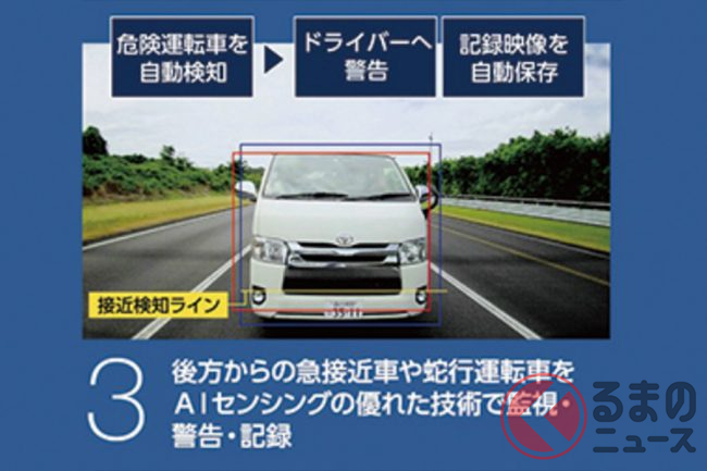 「AIセンシング」は後方の急接近や蛇行運転などのあおり運転を自動で検知