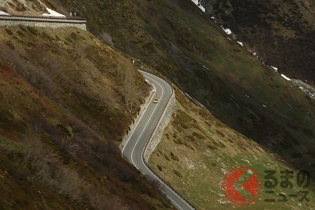 英国の映画『ザ・イタリアンジョブ』の冒頭、ランボルギーニ・ミウラが走ったグラン・サン・ベルナール峠。映画の撮影はイタリアとスイス国境にあるアルプスを越える、ワインディングでおこなわれた。