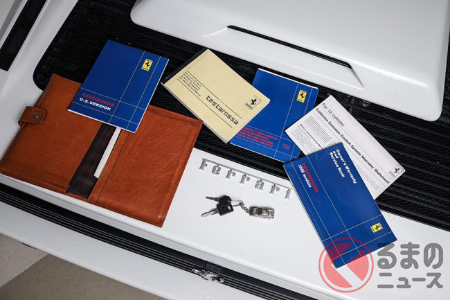 現在の走行距離は1万5200km。ロッソコルサのオリジナルカラーやインテリア、ドキュメント類はすべて完全な状態だが、RMオークションによれば、EUの輸入時に支払いが必要となる関税や輸入手数料、管理手数料等々、さまざまな金銭が未納のままになっているという。