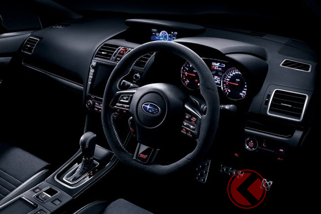 パワートレインではエアクリーナとマフラーにSTI製パーツを採用することで吸排気の抵抗を低減し、2リッター水平対向4気筒ターボエンジンの、最高出力300馬力というスペックはベース車から変わっていませんが、加速中のエンジントルクを最大約10%向上したといいます。