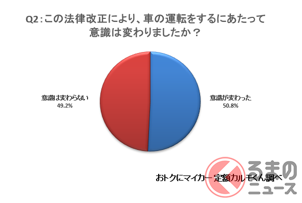 そして調査の結果、改正道路交通法により、多くの人がより一層安全運転を心掛けるようになっています。