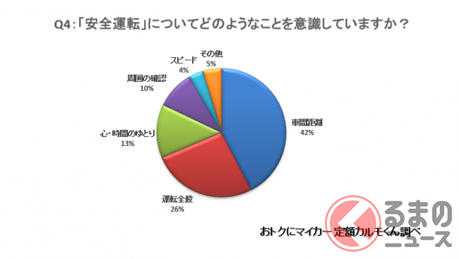「スピード」と答えた4%には、「法定速度を守る」や、「スピードの出し過ぎに注意している」などの回答が見られました。
