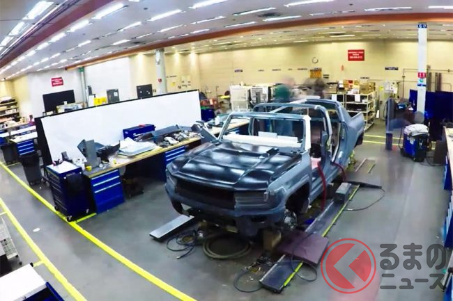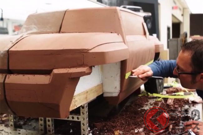 今回は、同時にハマーEVの最新映像も公開されている。いままでフロントグリルの画像しか発表されていないが、この映像にはデザイナーが制作したクレイモデルや開発中の車両も映っている。