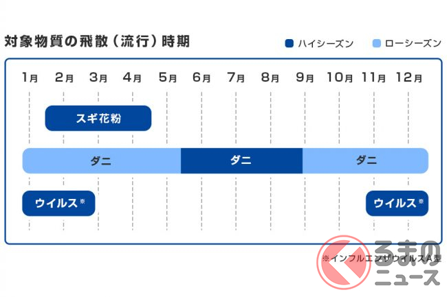 ・アレルゲン物質(ダニ・スギ花粉)低減