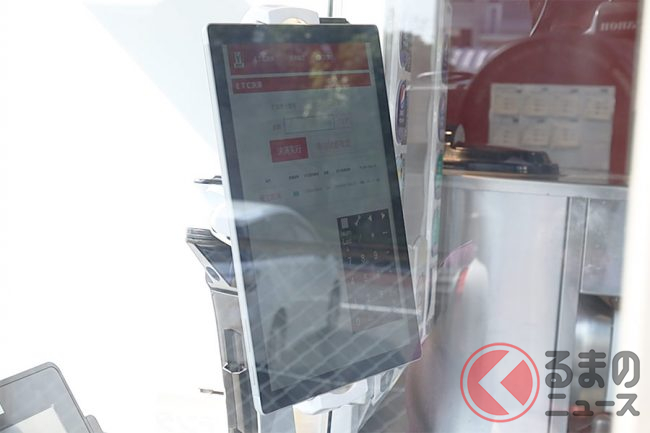 従業員が決済操作をおこなうと、ドライブスルー出口に設置されたETCアンテナが作動し、ETC車載機に挿入されたクレジットカード機能付きETCカードにて代金の決済が完了し、商品を受け取るという流れです。