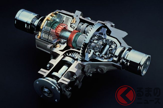 また「エボIV」最大の特徴ともなっている「AYC(アクティブヨーコントロール)」を搭載。これは、コーナリング時の回頭性とブレーキング時の安定性を向上させるために、走行状況に応じて後輪の左右の駆動力差を電子制御する当時の最先端4WD技術。「速い速度域でも安定してコーナリングする」サポート技術です。