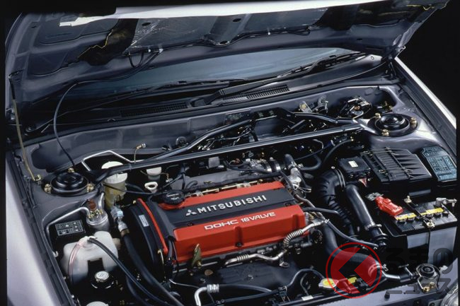 搭載される「4G63型」インタークーラーターボエンジンは、従来と形式こそ同じながら、高速型カムプロフィールや鍛造ピストン、ツインスクロールターボチャージャーの搭載などで、当時の自主規制枠いっぱいの280psまで最高出力をアップさせています。