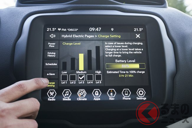 レネゲード4xeは、従来の1.3リッターガソリンエンジンに電気モーターを組み合わせることにより、Jeepならではの四輪駆動性能をパワーアップするとともに、卓越した走行をゼロ・エミッションで実現するモデルである。