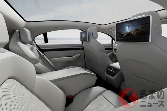 全長4895mm×全幅1900mm×全高1450mmという大きさのボディに、200kW(271ps)のモーターをふたつ搭載した4WDのEVで、乗車定員は4名。サイズ的にはEセグメントのセダンで、メルセデス・ベンツの「Eクラス」やBMW「5シリーズ」と同じくらいとなる。