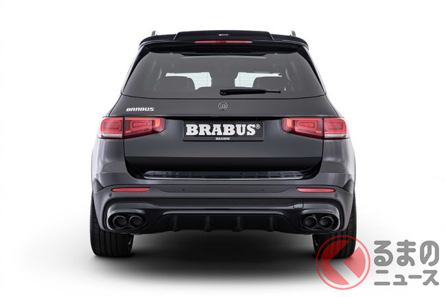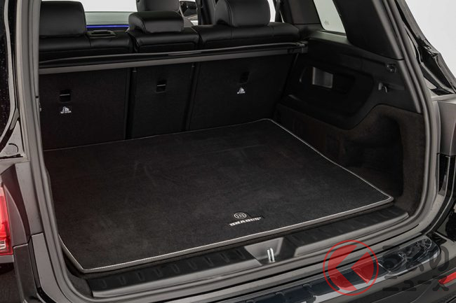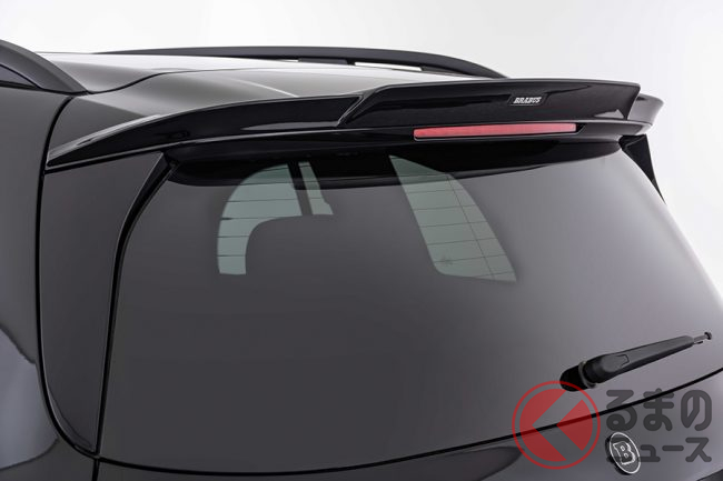 リアハッチに装着されるリアスポイラーも、もちろんブラバス・オリジナルのデザインだ。GLBクラスのデザインは、前で触れたとおり3列シートを採用した関係から、例えば「GLAクラス」と比較すると典型的なSUVのシルエットだが、このスポイラーが装着するだけでスポーティな印象が高められる効果がある。