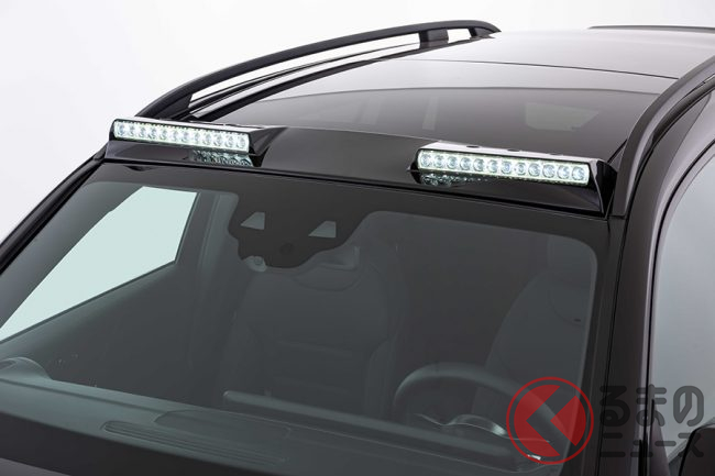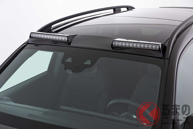 フロントウインドウの上部には、パワービーム・ルーフラックと呼ばれるルーフレールと組み合わされる、LEDのライトが左右に装備されている。これはドライバーがハイビーム、もしくはヘッドライト・フラッシャーを選択した時に同時に点灯するもので、ブラバスによると夜間走行の安全性向上に大きく貢献する装備とのことだ。