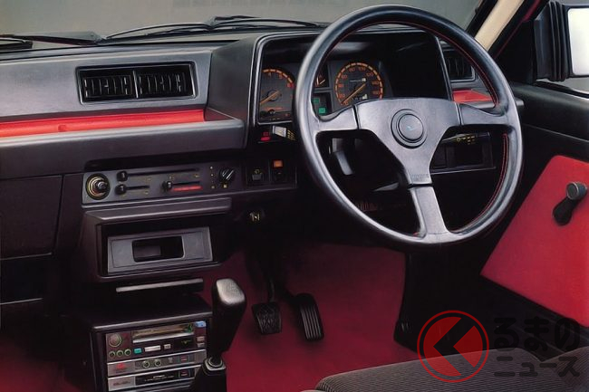 メインとなるモデルは3ドアハッチバックで、スポーティなグレードにはウレタン製の小ぶりなリップスポイラーと、やや大型のリアスポイラーが装着されており、当時のトレンドを取り入れています。