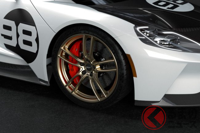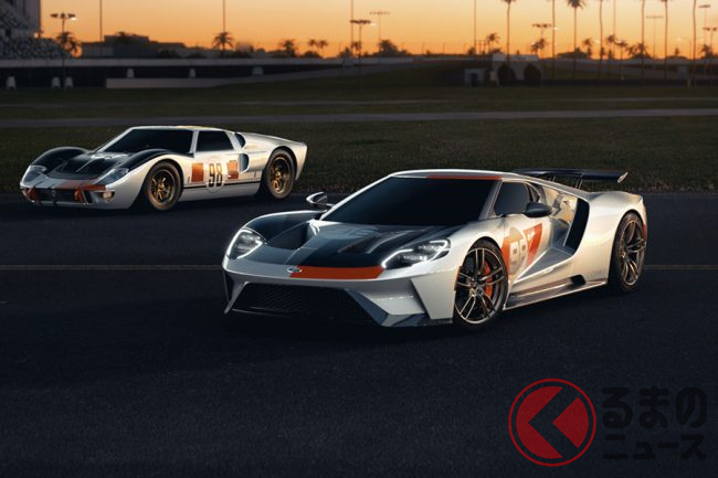 1966年、ドライバーのロイド・ルビーとコドライバーのケン・マイルズは、オリジナルの「フォードGT40 MK II」を駆りデイトナ24時間耐久レースで優勝。同時に1位、2位、3位、5位とフォードが表彰台を独占し、さらにセブリング12時間耐久レースとル・マン24時間耐久レースでも1位、2位、3位を獲得した。今回のヘリテージエディションは当時のカラーリングをベースにした初のモデルとなる。