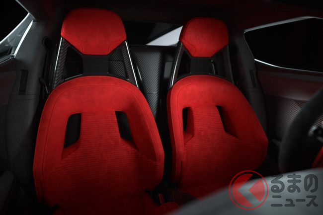インテリアでは、ブラックアルカンターラをインパネやヘッドライナー、ステアリングホイールリムに採用。レッドアルカンターラのパフォーマンスシートがコントラストを与える。