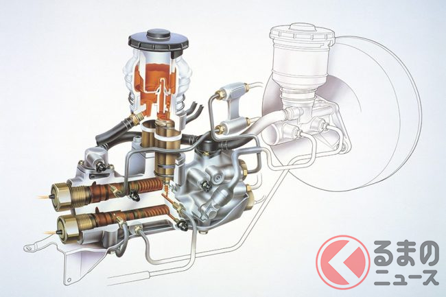システム自体はいまと大きく変わらず、4輪に装着された回転を検知するセンサーの情報をコンピューターが取り込み、ブレーキ圧を自動で制御するものです。