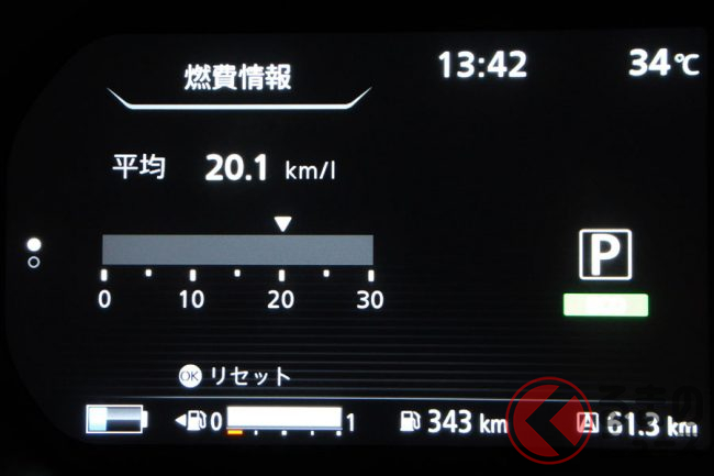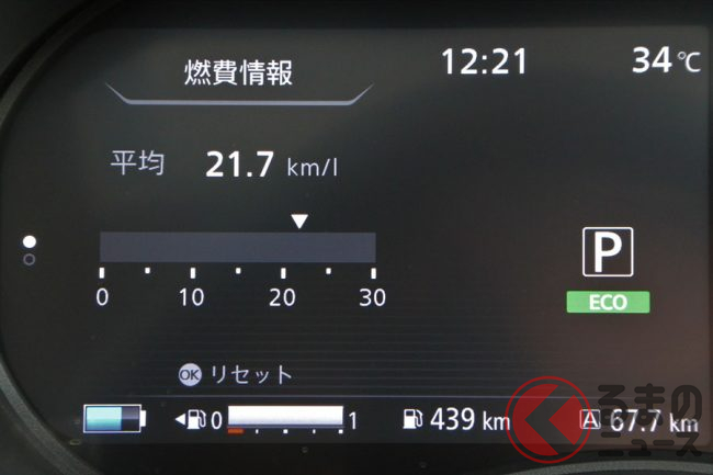 カタログ上での燃費数値はWLTCモード燃費で21.6km/Lですから、カタログ燃費に届かない数値となりましたが、テスト日は酷暑の真っただ中で、エアコンがフル稼働だった点を考慮するとそこまで悪い数値とはいえないかもしれません。