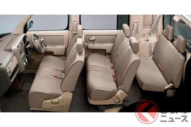 そして、2003年にはこの2代目キューブをベースに、ロングホイールベース化した3列シート7人乗りミニバンの「キューブキュービック」が登場。