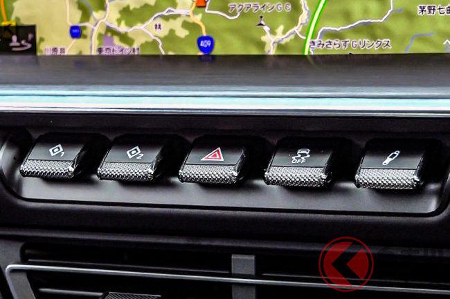 バンパーに埋め込まれたエキゾーストエンドにも一体感があるが、リプレイスマフラーにする場合どうしたものかと、チューニング屋としては一考させられる。