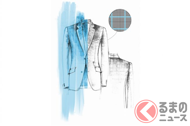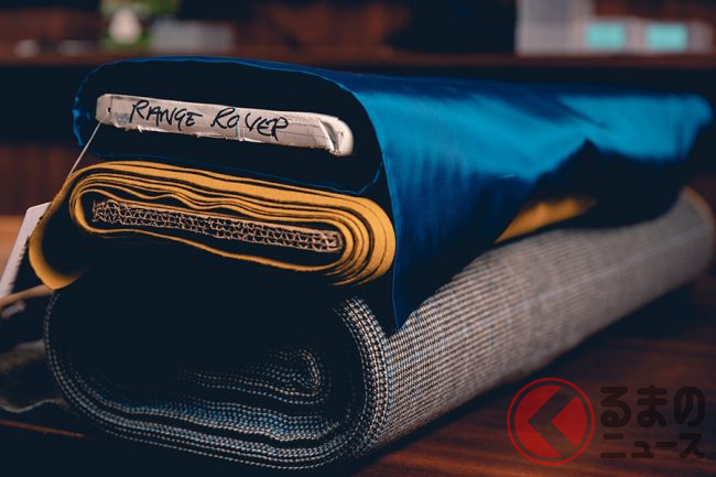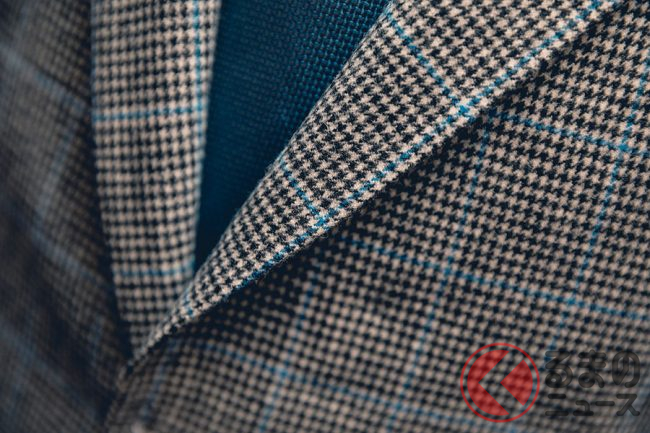 英国サマセット州の生地メーカー、Fox Brothers & Co製の生地は、初代レンジローバーのエクステリア塗装にインスパイアを受けたもので、トスカーナブルー、バハマゴールド、ダボスホワイトの組み合わせでクラシックな千鳥格子に新鮮な趣をもたらしている。