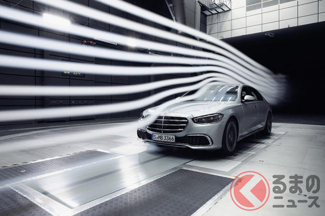 空気抵抗係数(Cd値)は0.22と、Sクラスは世界でもっとも空力性能の高いクルマのひとつとなっている。そのため、前面投影面積は200平方センチメートルと大きくなったにもかかわらず、Cd値は先代Sクラスよりも低くなっている。