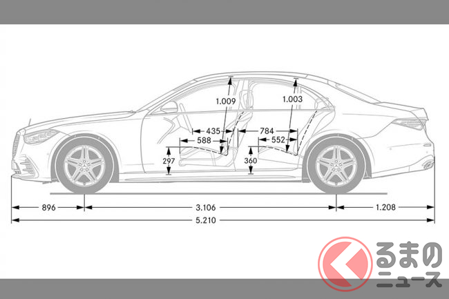 ショートボディは先代Sクラスよりもホイールベースが約70mm延長