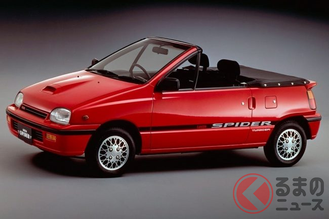 そして、1991年には派生車の「リーザスパイダー」を発売。軽自動車規格の変更により660ccとなったリーザをベースに、ルーフ部分をカットしてソフトトップを装着した、オープン2シーターに改造されたモデルでした。