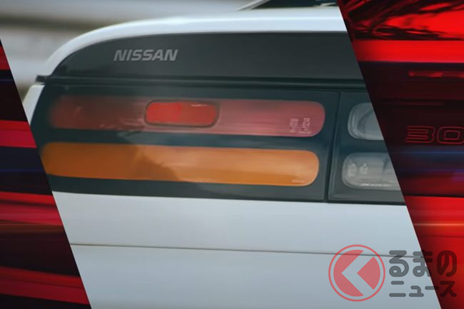 4代目モデル(Z32)の走行シーンに場面が代わるとその象徴的なテールランプが映し出され、次の瞬間には横方向に長いLEDライトが現れます。新型Zでは歴史モデルのアイコニックな造形を採用しているようです。