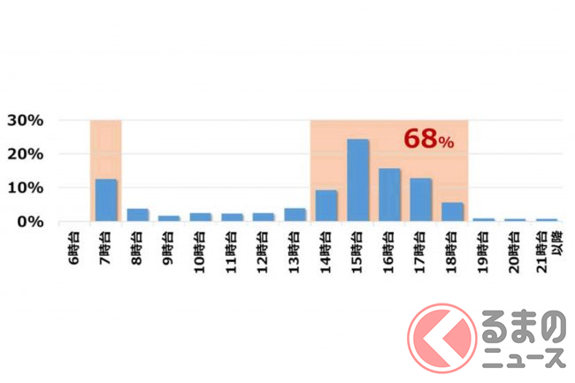 1日のなかでみると、下校時間以降の14時から18時台に68%の事故が発生。このことからも、特に下校時間以降、夕暮れの時間帯に自身の身を守ることが重要です。