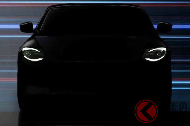 斜め前から見たボディシルエットを公開した際に見られた上下2段に光る特徴的なヘッドライトは、今回の正面から見たシルエットでも確認することができます。