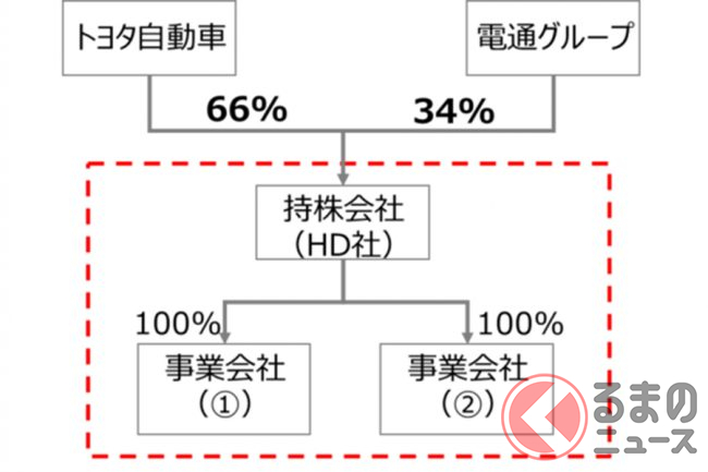 同新会社の発足については2020年9月、トヨタ、電通グループ、デルフィスの3社が、デルフィスによる電通グループへの第三者割当増資を含む資本業務提携契約を締結。ふたつの事業会社と、それを統括する持株会社による新体制を発足するものです。