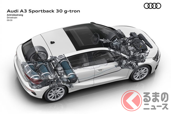 独アウディは2020年9月15日、アウディのCセグメントハッチバックモデル「A3スポーツバック」に「g-tron(g-トロン)」を追加した。ドイツでの販売は2020年秋からで、ベース価格は3万705.88ユーロ(日本円で約383万円)からとなる。